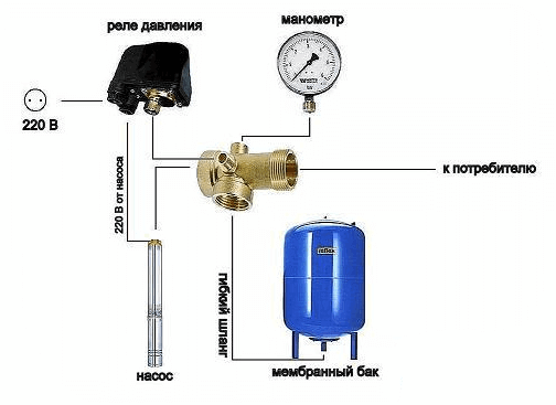 определяющим. Объем воды в баке не более 50% от общего объема, когда выйдет 50% от этого запаса воды, то реле давления включит насос. Правильно настроенное давление воздуха в гидроаккумуляторе на