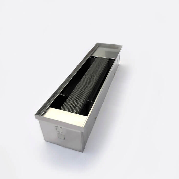 Корпус встраиваемых конвекторов серии ITTZ из оцинкованной стали. Эти конвекторы — экономичное отопительное решение для сухих помещений. Работают по принципу естественной конвекции, то есть обогревают помещение за счет движения нагретого воздуха от  теплообменника вверх. Небольшая высота конвекторов серии ITTZ (75 мм, 9 мм, 11 мм) позволяет монтировать их в пол малой глубины.