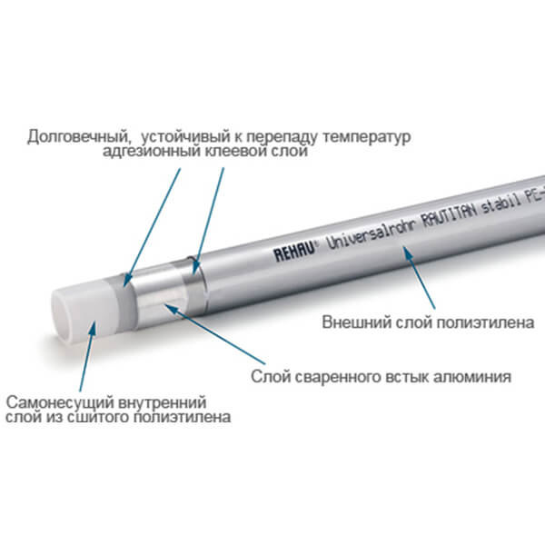 (защита от диффузии кислорода) и проклеенного наружного слоя из полиэтилена. За счет этого трубы получаются высокопрочными и устойчивыми к повреждениям. Немаловажным качеством являются –