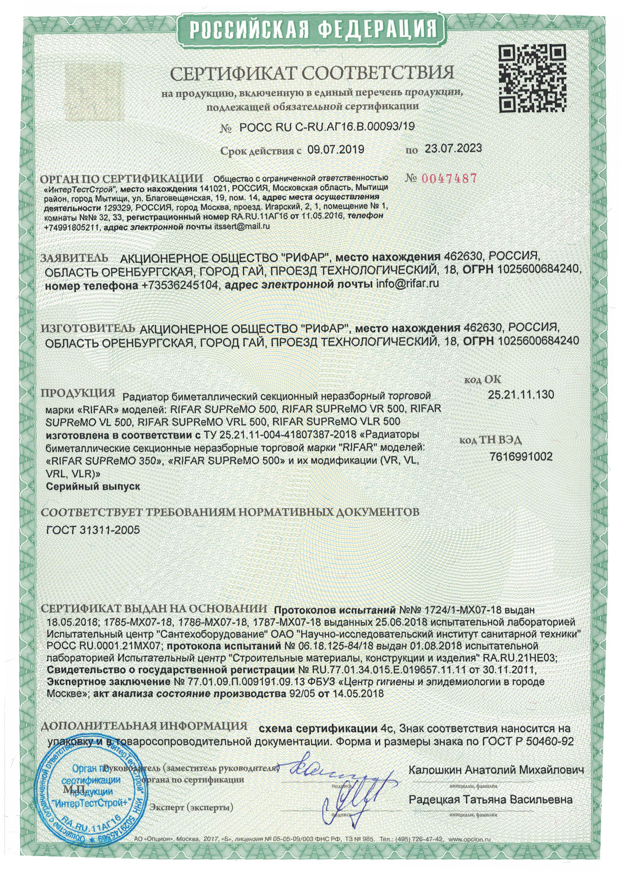Гарантия на радиатор действует в течение 25 лет со дня его продажи при наличии у покупателя настоящего паспорта с заполненным гарантийным талоном и штампом торгующей организации. Гарантия