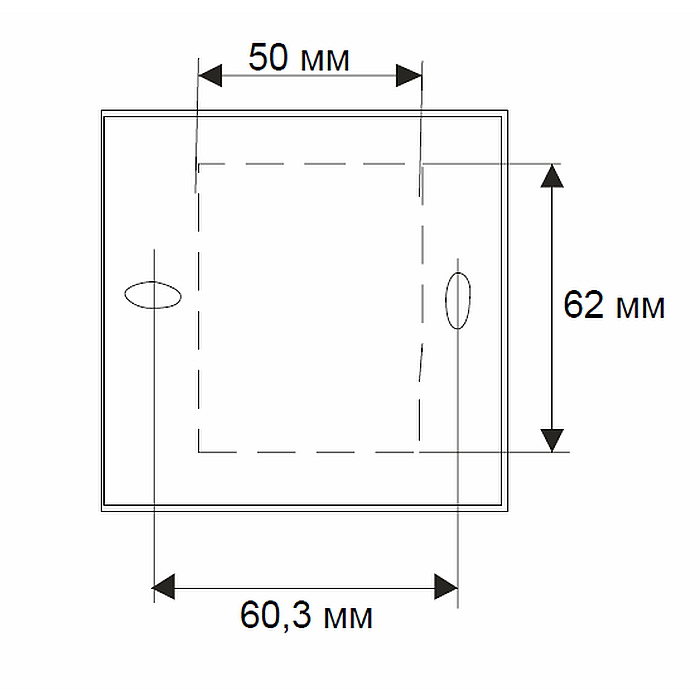 Монтаж на прямоугольную распределительную коробку в выемке, центры крепления на расстоянии 60,3 мм