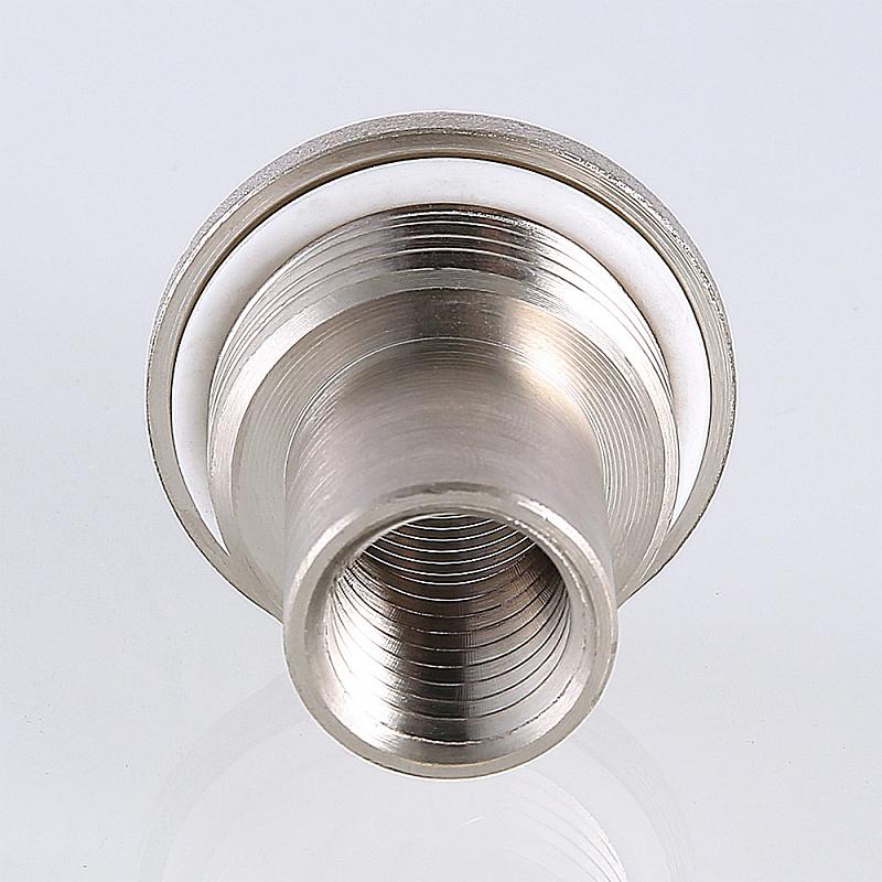 (VT.503.D) Удлинитель потока VT.503 – уникальная разработка инженеров VALTEC. Его применение является оптимальным решением проблемы неравномерного прогрева многосекционных радиаторов с односторонним подключением (когда работают только нескольких секций, расположенных ближе к точкам подключения отопительного прибора). Удлинитель потока VT.503 представляет собой латунную никелированную радиаторную футорку, дополненную патрубком с внутренней треугольной резьбой крупного шага. В этот патрубок ввинчивается отрезок металлополимерной трубы с наружным диаметром 16 мм. Удлинитель потока устанавливается в обратный коллектор радиатора, тем самым создавая «псевдодиагональное» одностороннее подключение. Изделие выпускается в правом (D) и левом (S) исполнении для подключения труб или арматуры c диаметром условного прохода 1/2 и 3/4".