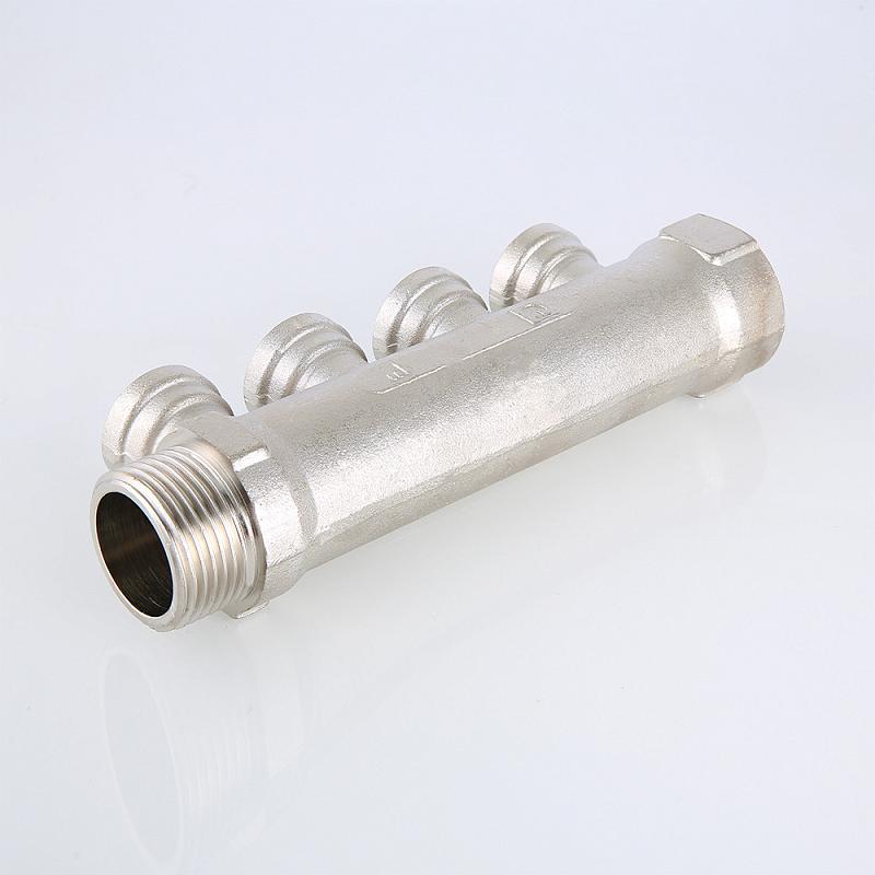 (VTc.550.N) Латунный никелированный коллектор на 2, 3 или 4 выхода диаметром 1/2" с внутренней резьбой. Диаметр коллектора – 3/4 или 1", резьба – внутренняя/наружная. Рабочая температура