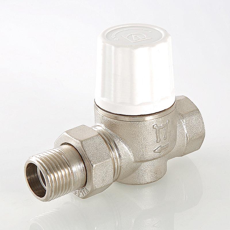 (VT.034.N) Прямой латунный клапан для ручного или автоматического регулирования расхода теплоносителя через отопительный прибор. Повышенная пропускная способность позволяет использовать его в однотрубных системах. Для автоматического регулирования комплектуется термостатической головкой или сервоприводом, управляемым комнатным термостатом, контроллером и т.д. Использование регулирующих клапанов VALTEC c термостатической головкой позволяет автоматически поддерживать заданную температуру в помещении с точностью до 1 °С. Наличие полусгона дает возможность монтировать и демонтировать клапан без демонтажа трубопровода. Ремонтопригодный. Рабочая температура – до 120 °С, давление – до 10 бар. Резьба трубных присоединений – внутренняя/наружная, для термостатической головки или сервопривода – наружная М30 x 1,5.