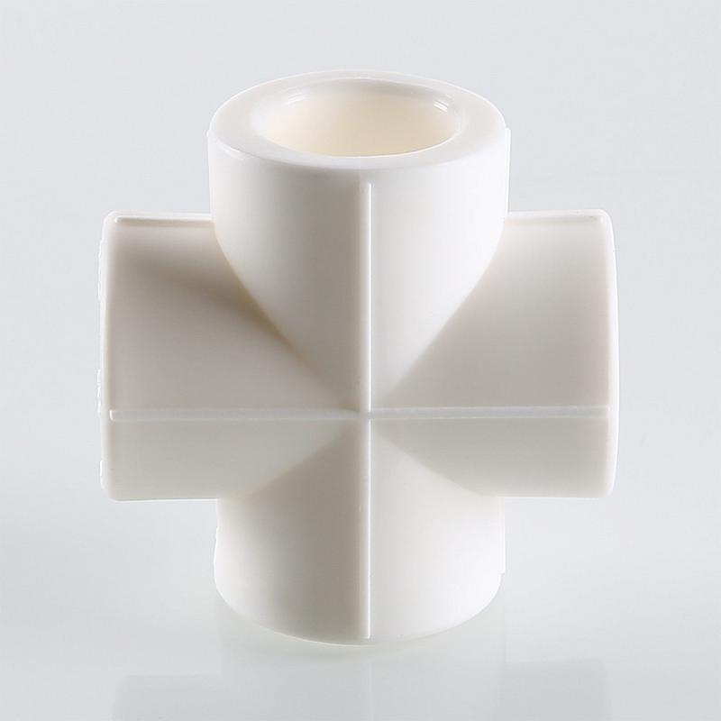 (VTp.741.0) Фитинг для соединения четырех полипропиленовых труб равного диаметра (крестовина). Монтаж производится методом раструбной сварки.