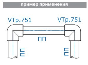 (VTp.751.0) Двухсторонний фитинг для соединения элементов полипропиленового трубопровода под углом 90° друг к другу. Монтаж осуществляется методом раструбной сварки.